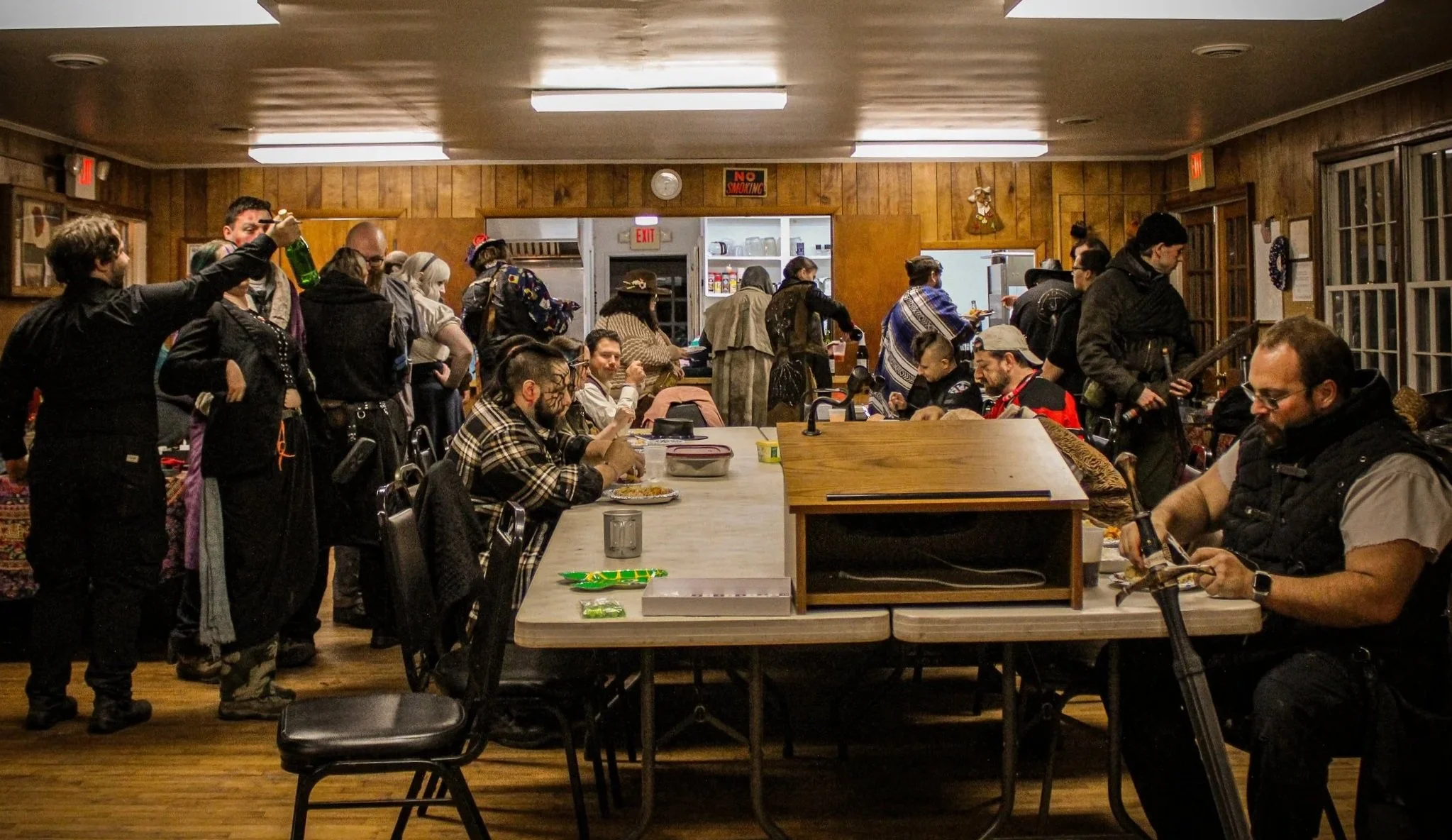 NPC Shifts are a 4 hour period (Sometimes 6 or None depending on your ticket choice after your first (SEE ABOVE) games), where you are given a role, costuming (to wear over your regular, plain clothing), and props to play that role out in the weekend’s story for other players to interact with. This period of time will be selected when you check in to the event, and will be based in Ops, which is a designated building on the campsite. During your shift, you will portray a variety of roles depending on what modules (hour-ish long interactive stories) are planned for that time period.